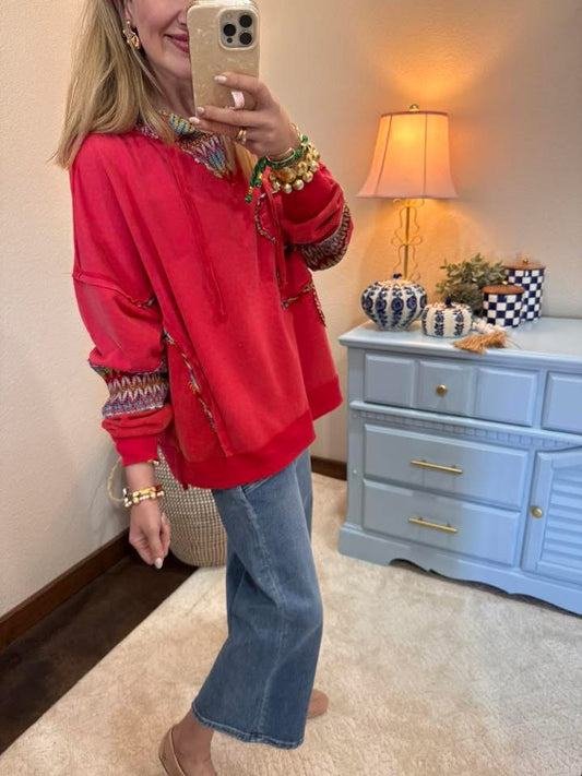 Poppy Red Daisy Patch Hooded Sweat Shirt