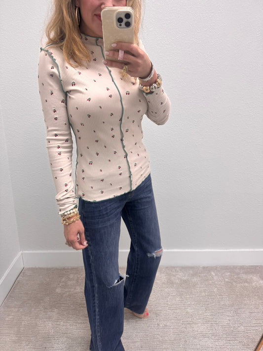 Mustard Pink Quilted Flower Print Cardigan Sweater