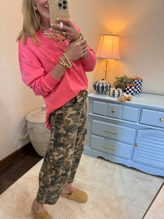 Winter Rose Acid Washed Double Ribbed Exposed-Seam Pullover