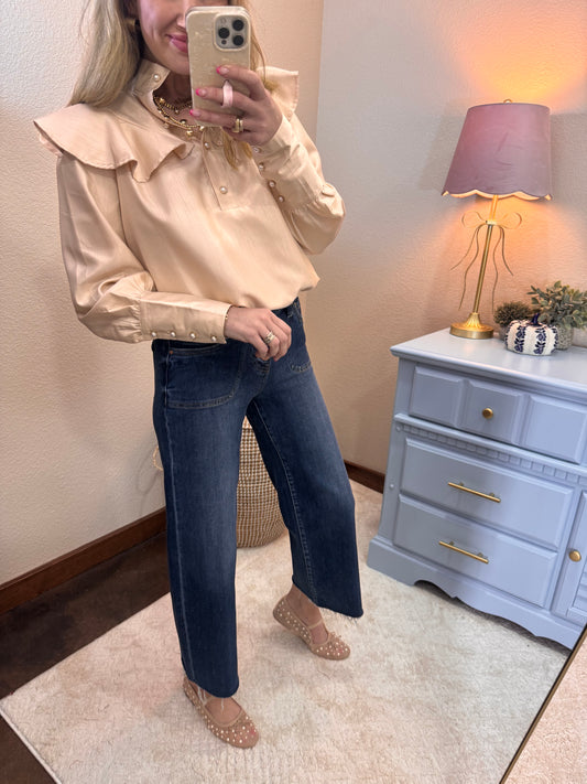 Blue Acid Washed Double Ribbed Exposed-Seam Pullover
