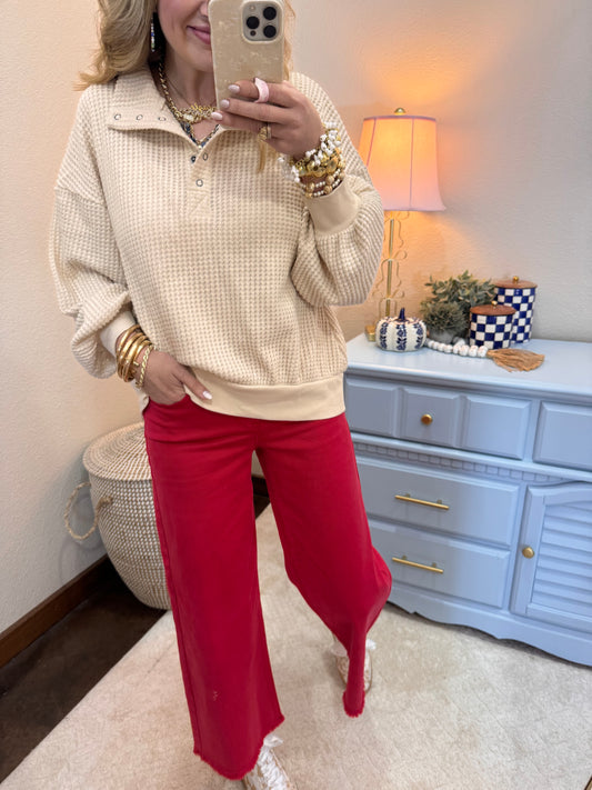 Cream Corn Plaid And Multi Color Washed Terry Pullover