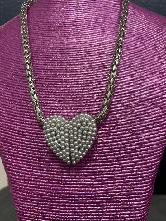 Silver Pearl Heart Magnetic Necklace