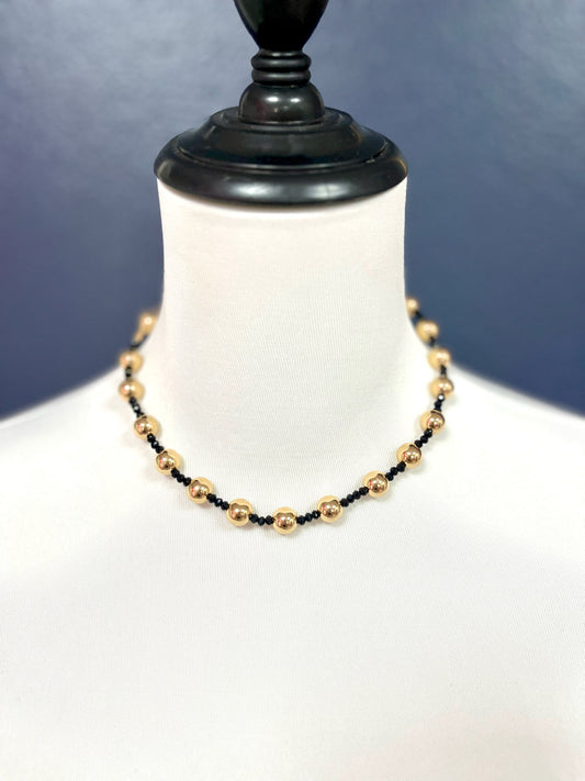 Beaded Gold Ball Magnetic Necklace (Black and Clear)