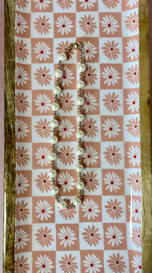 Water Resistant Style Pearl and Gold Bead Magnetic Necklace