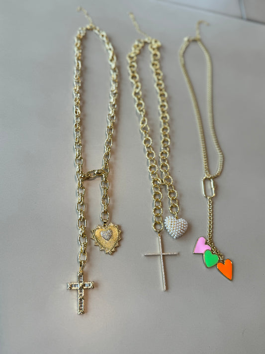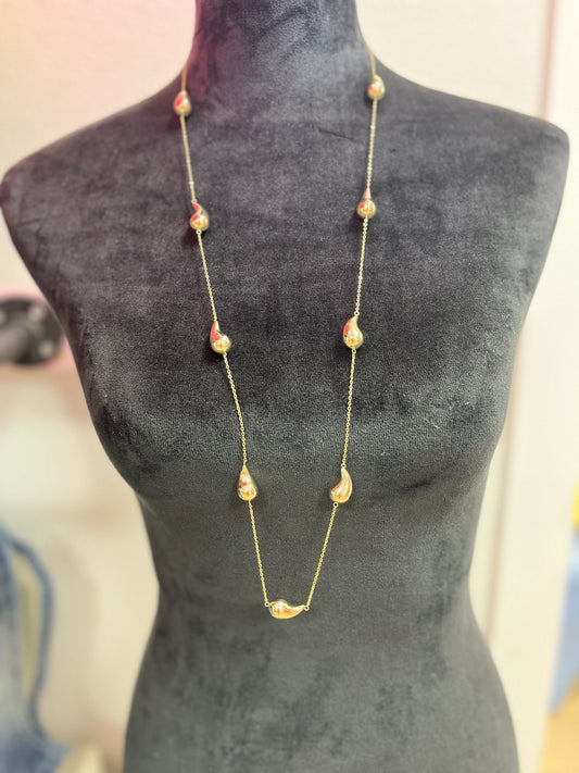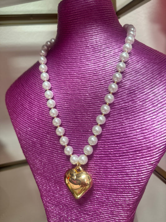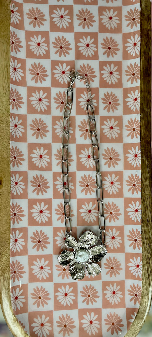 Flower With Pearl Paper Clip Chain Necklace Silver)