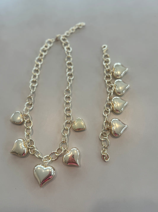 IP7 Gold 5 Heart Puff Heart Charm Necklace