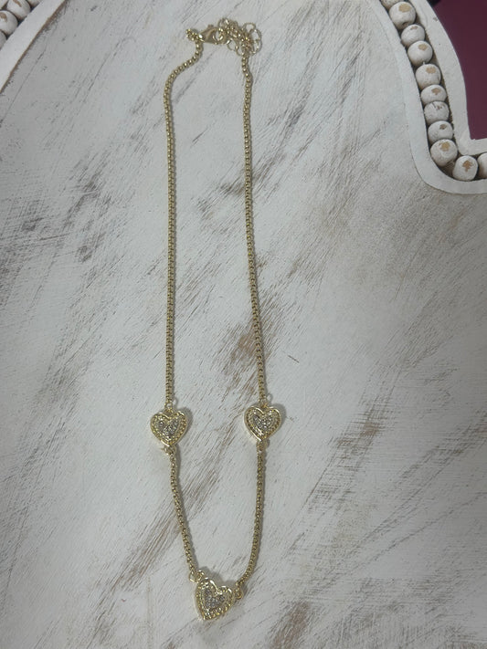 Crystal Heart Front Clasp Silver Link Necklace FS
