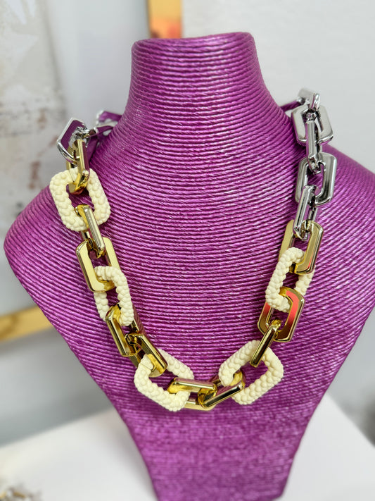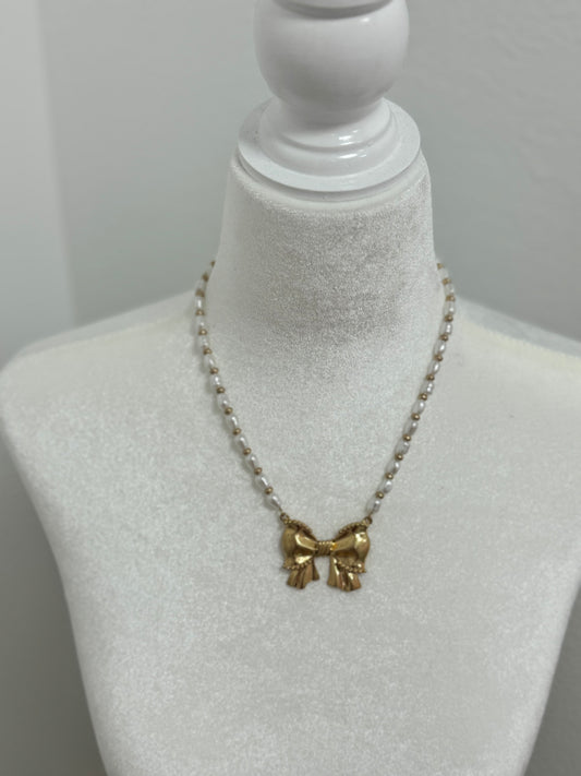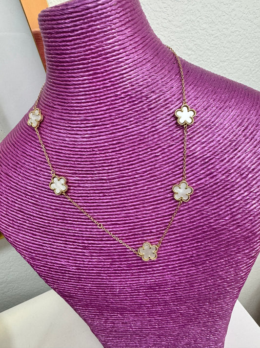 Gold Mother of Pearl Diamond Flower Style Necklace FS