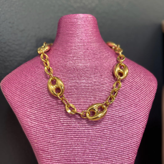 Gold Thick Circle Link Clasp Necklace