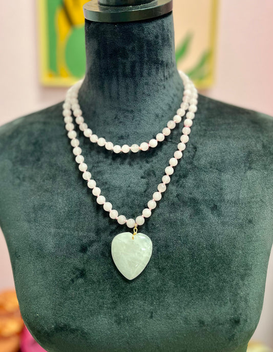 Grey Long Stone Heart Necklace