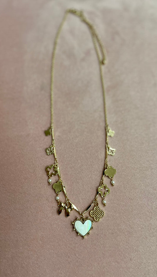 Clover & Heart Charm Necklace with Pear Inlay