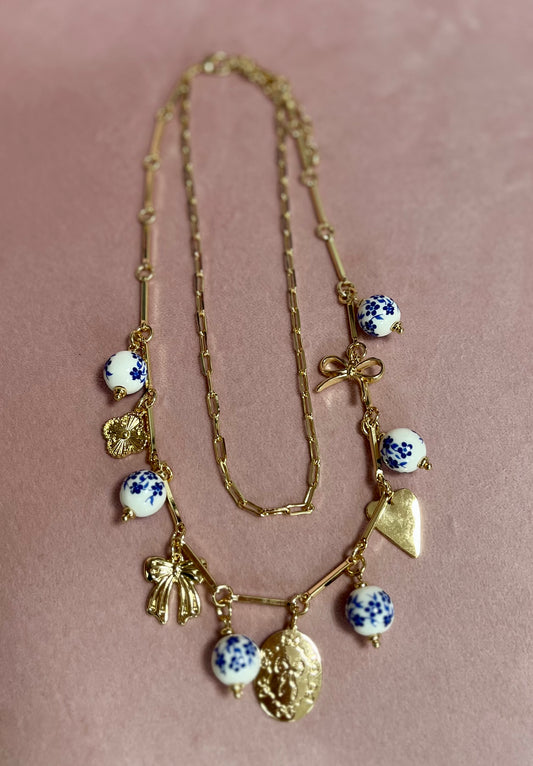 Charm Necklace with Blue & White Beads