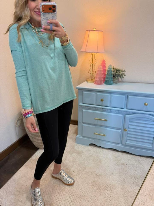 Turquoise Soft Melange Hacci Exposed Seam Hi-low Tee