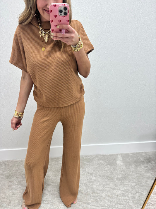 Camel Mock Neck Sweater Two Piece Set FS