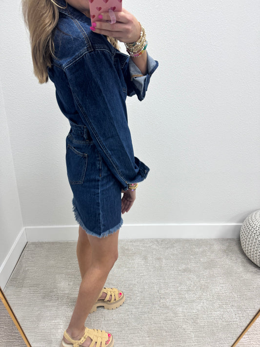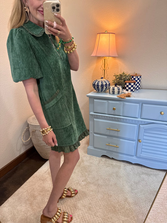 Hunter Green Quarter Zip Ruffle Pocket Dress