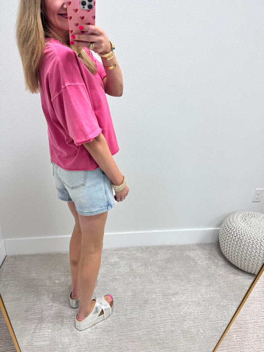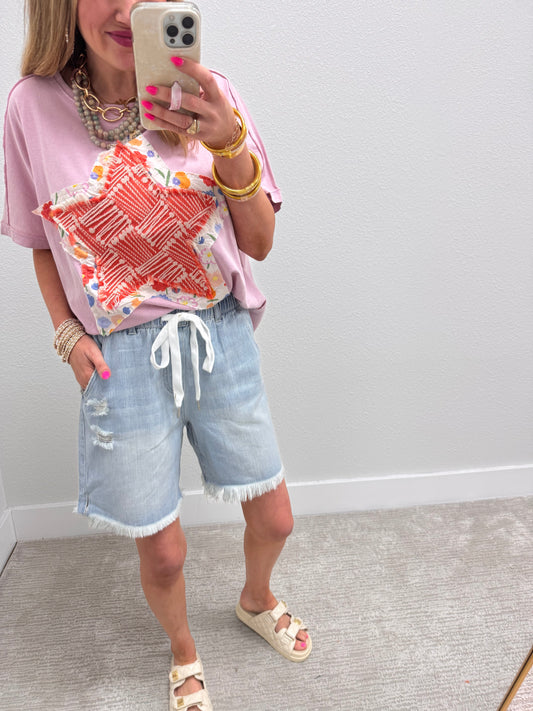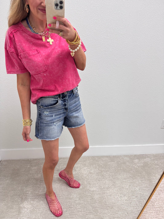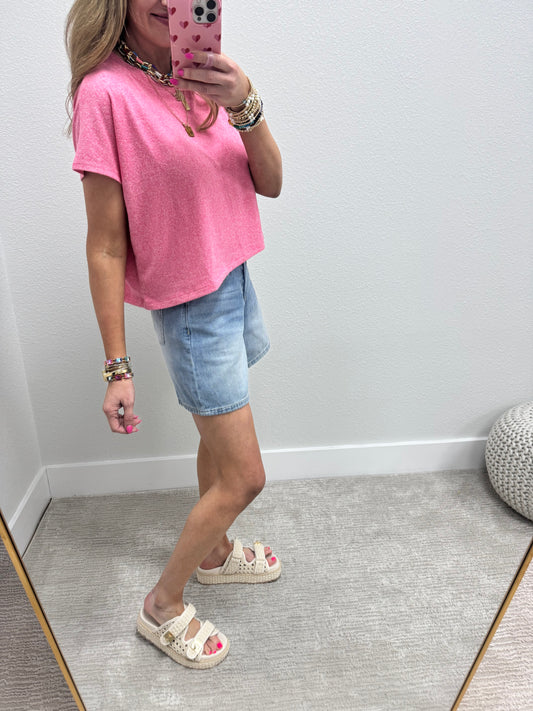Light Wash Mid Rise Soft Denim Shorts Restock! FS