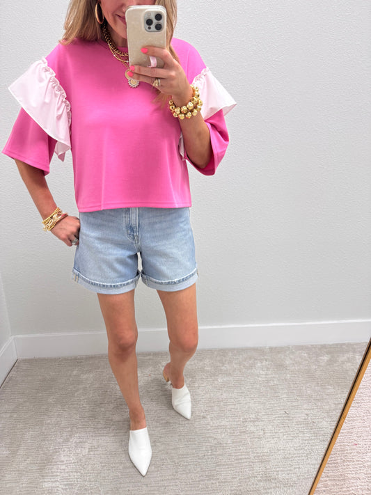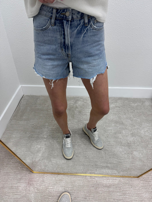 Mica Midday Raw Hem Mid Length Denim Shorts