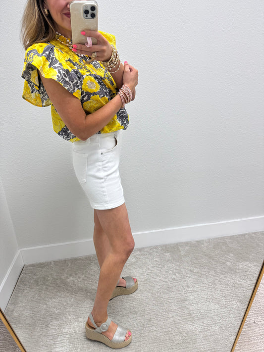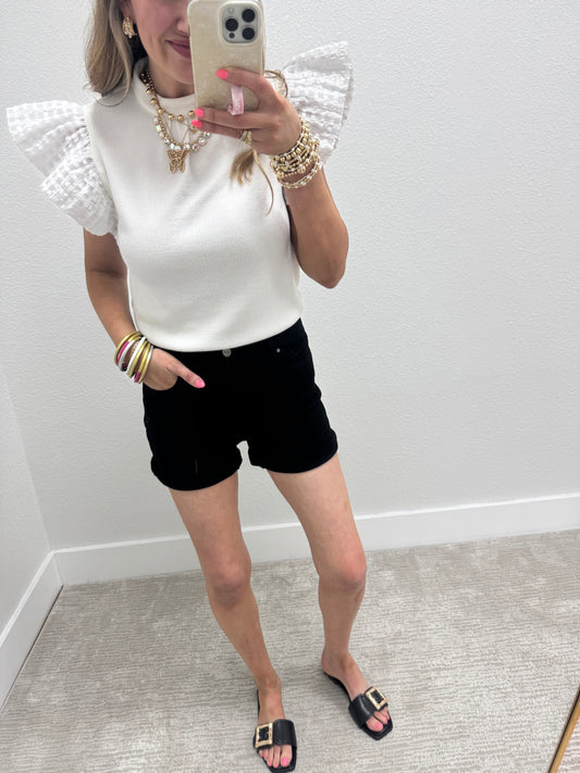 Risen White Tummy Control High Rise Cuffed Shorts FS