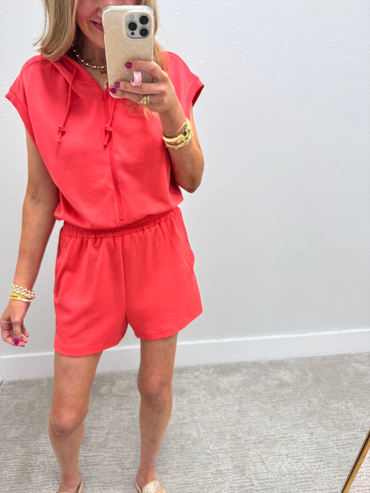 Pink Mineral Washed Floral Print Sleeveless Romper With Front Pockets
