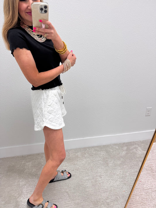 White Quilted Drawstring Shorts