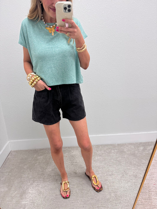 Vervet High Rise Medium Washed Cuffed Denim Shorts FS