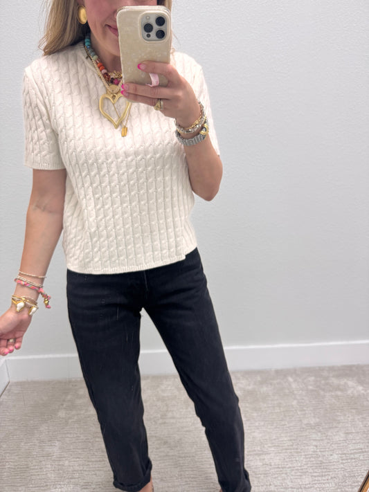 Cream Round Neck Cable Knit Top
