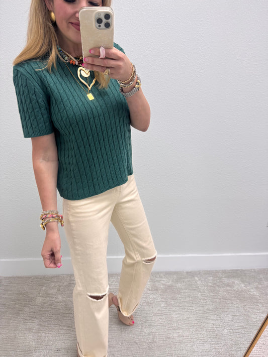 Evergreen Round Neck Cable Knit Top