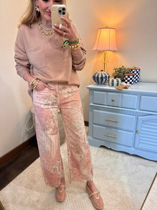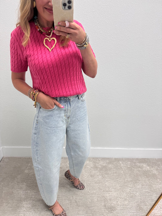 Pink Round Neck Cable Knit Top