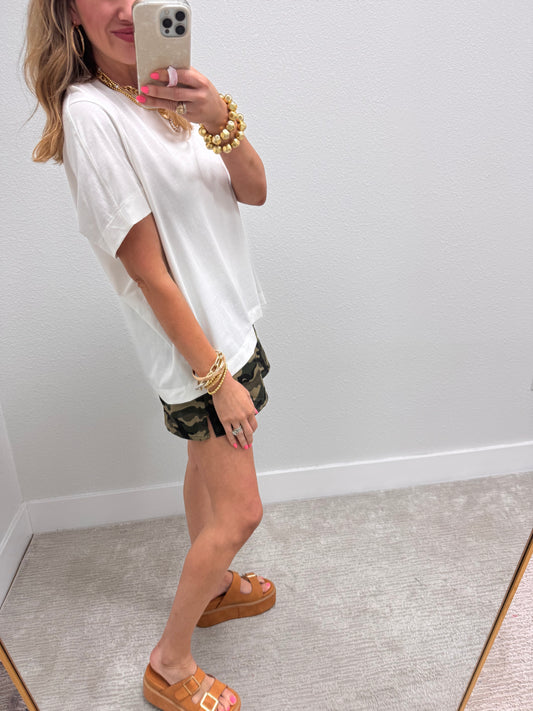 White Open Arm Round Neck Tee