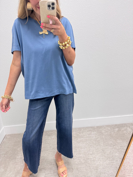 Dusty Blue Open Arm Round Neck Tee