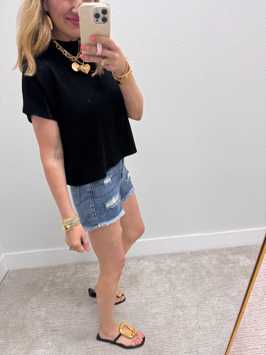Black High Neck Ribbed Swing Top