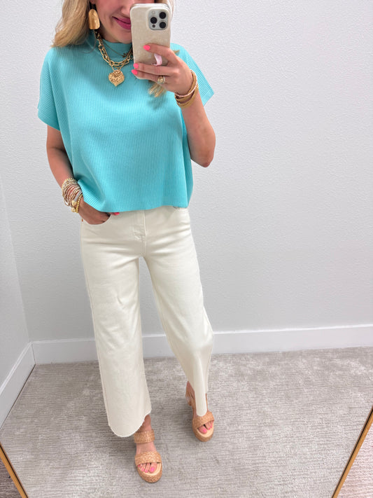Mint Sky High Neck Ribbed Swing Top