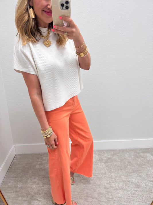 Ivory High Neck Ribbed Swing Top