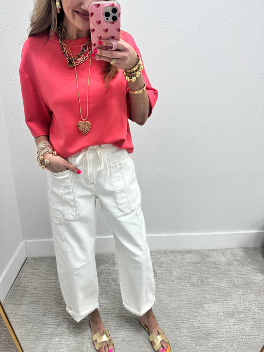 Taffy Pink Scuba Short Sleeve Top