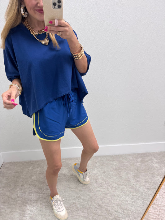 Light Navy Melagne Crop Short Sleeve