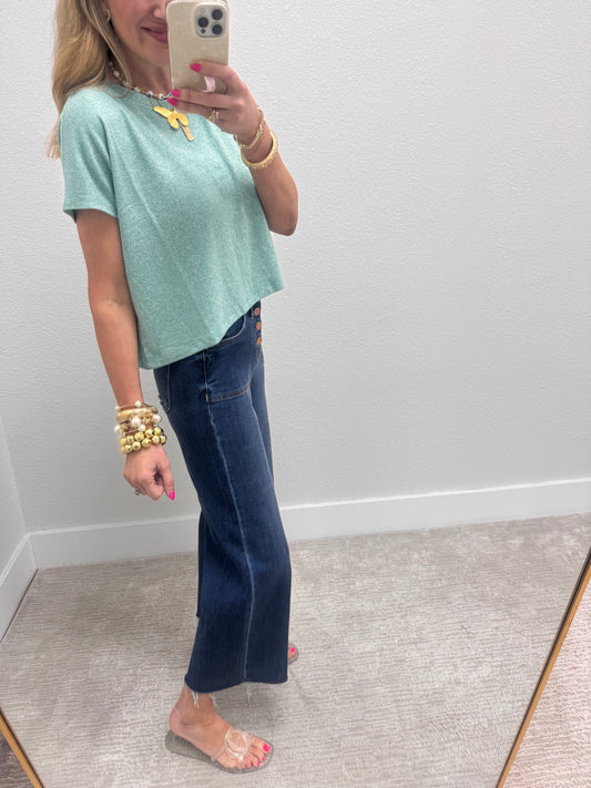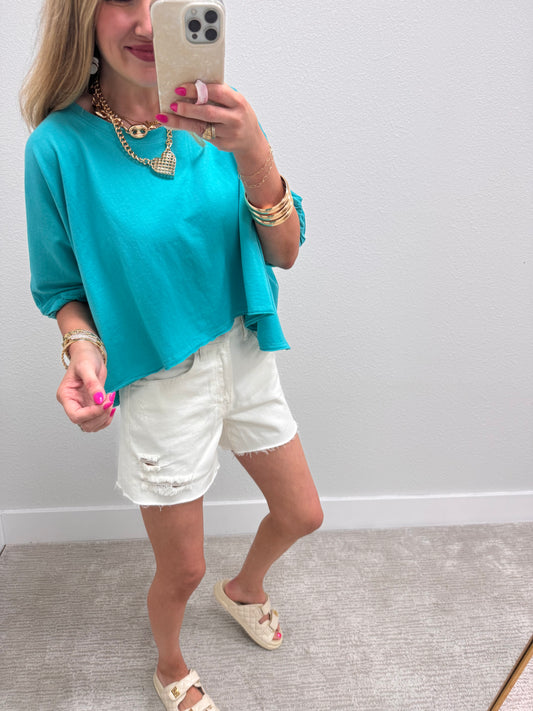 Turquoise Melagne Crop Short Sleeve