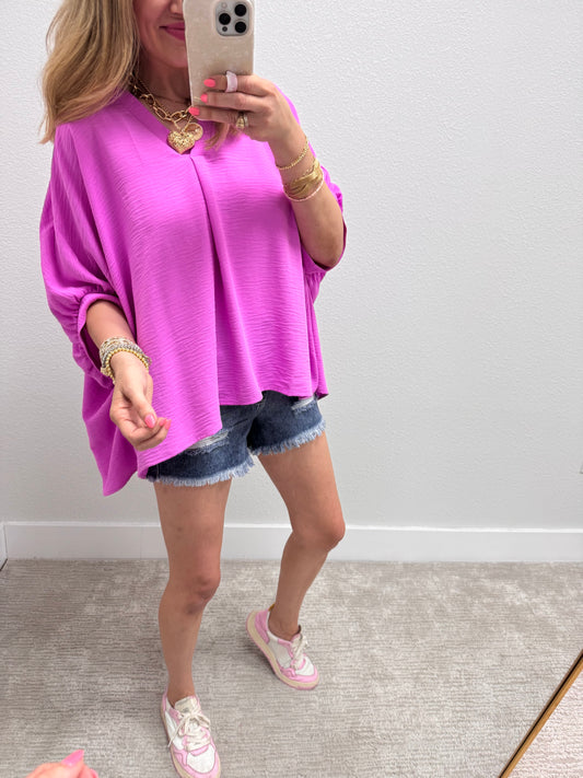 Bright Mauve V-Neck Dolman Sleeve Top