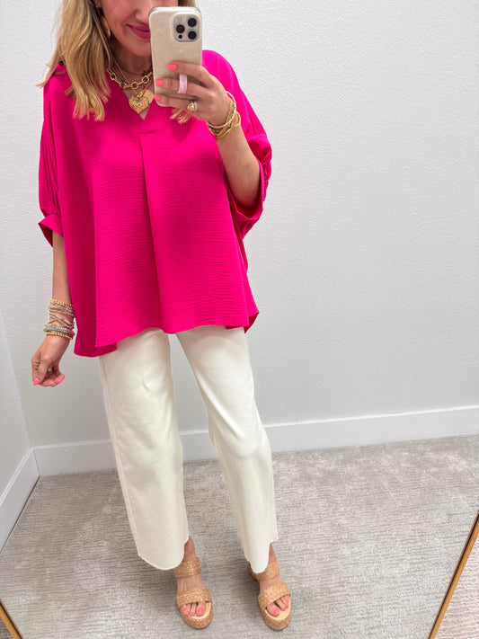Hot Pink V-neck Dolman Sleeve Top