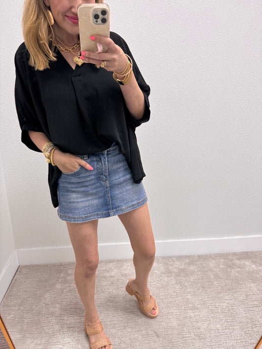 Black V-Neck Dolman Sleeve Top