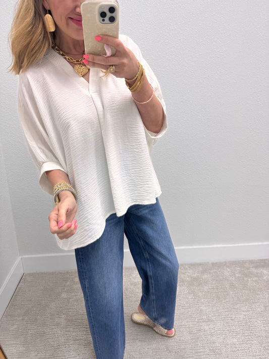 Off White V-Neck Dolman Sleeve Top