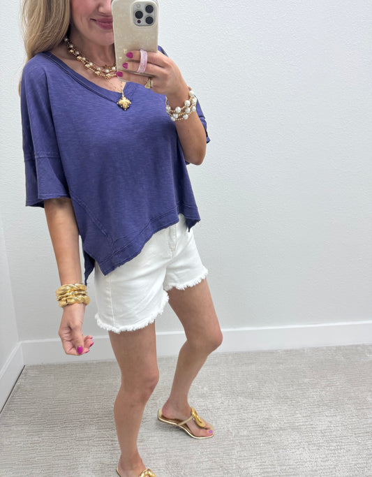 Light Navy Oversized Round Neck Box Tee