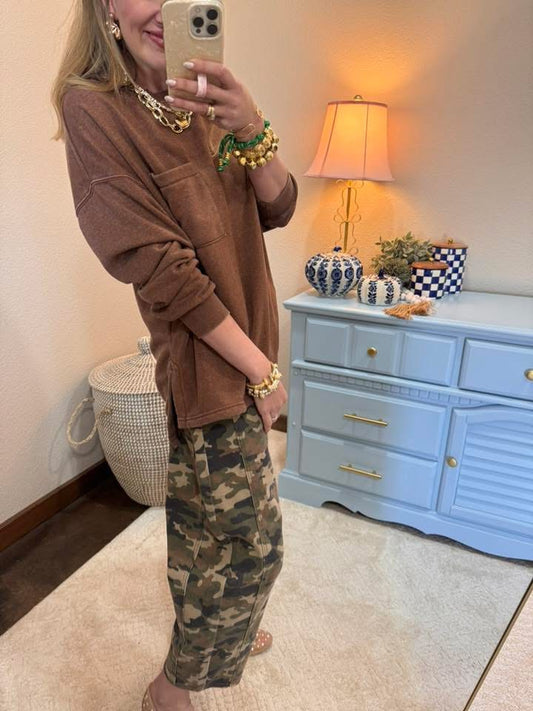 Chesnut Crew Neck Single Pocket Pullover Sweatshirt