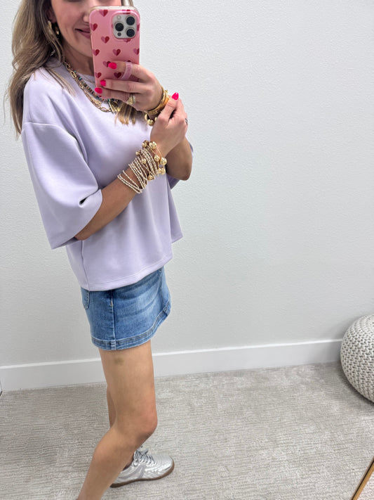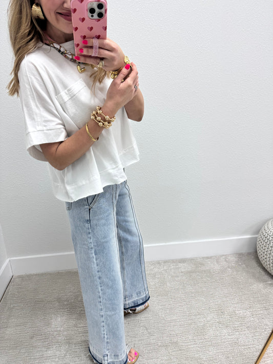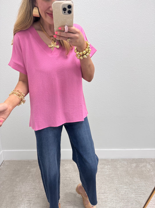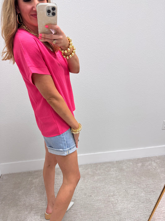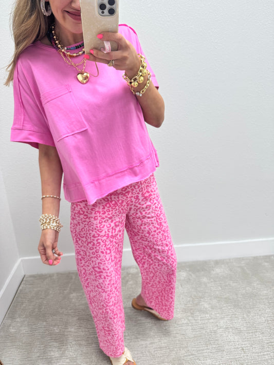 Pink Exposed Hem Boxy Crop Short Sleeve