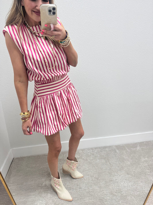 Pink and White Stripe Bubble Two Piece Set