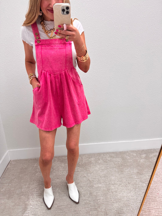 Pink Washed Romper with Button adjustable straps
