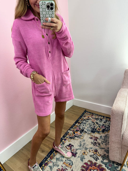 Dusty Rose Long Sleeve Button Down Romper