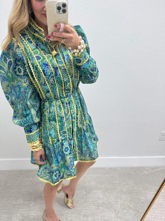 Blue and Green Detailed Dress