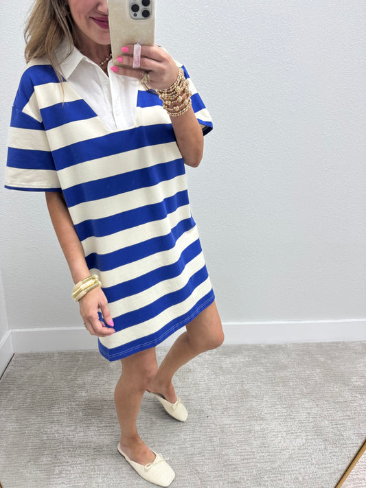 Royal and Cream Thick Stripe Collared Dress FS