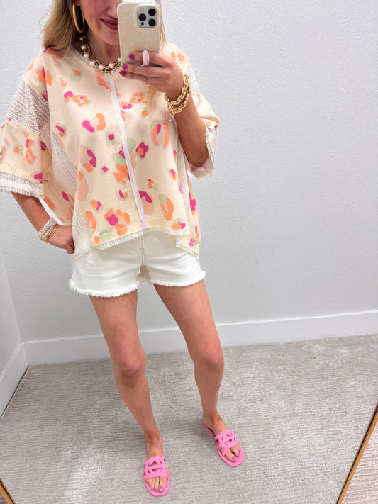 Cream Leopard Top with Crochet Lace Detail