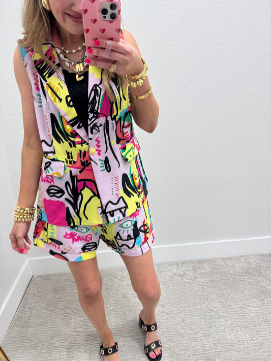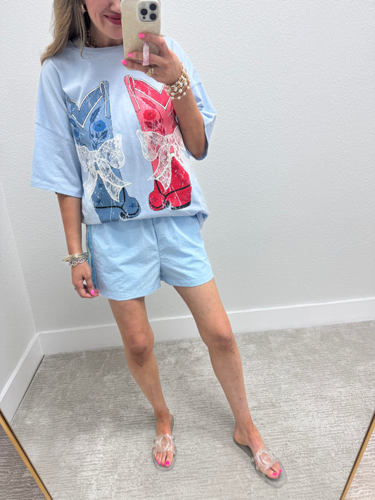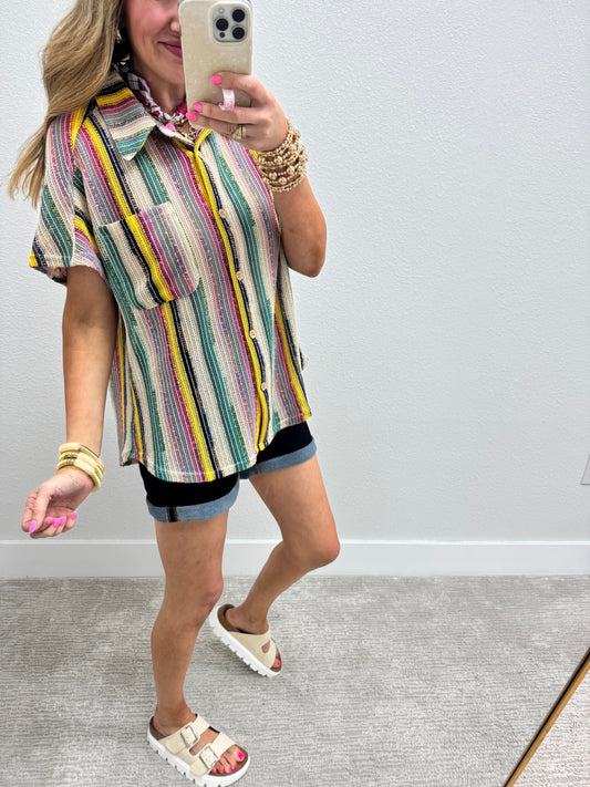 Green and Cream Striped Bubble Skirt Two Piece Set